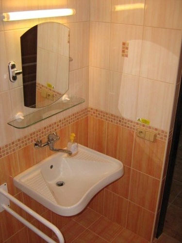 Nabízíme i ubytování v bezbariérově uzpůsobeném pokoji v přízemí penzionu. Pokoj je vybaven dvoulůžkovou postelí, skříní, stolkem, dvěma židlemi, TV, vlastní koupelnou s madly, WC a kuchyňkou s vařičem, mikrovlnou troubou a rychlovarnou konvicí.